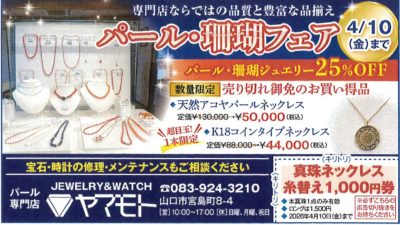 【期間限定】ヤマモトパールフェア開催中!高品質な真珠が驚きの価格に 専門店ならではの品質と品揃え! 「JEWELRY & WATCH ヤマモト」にて、期間限定のパールフェアを開催しております。 大切な記念日やフォーマルなシーンに欠 […]